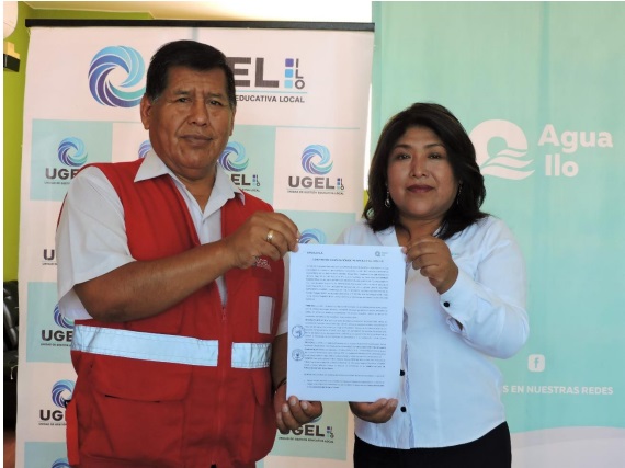 La EPS Ilo y la Ugel Ilo, suscribieron un convenio de cooperación institucional para continuar con la implementación de la iniciativa de educación sanitaria “Agua Clases”, que promueve el Ministerio de Vivienda Construcción y saneamiento (MVCS) y el Organismo Técnico de la Administración de los Servicios de Saneamiento (OTASS) junto a la EPS Ilo, con la finalidad de sensibilizar a la comunidad educativa sobre el cuidado y uso responsable del agua potable y sistema de alcantarillado. Suscribieron dicho convenio el director de la Ugel Ilo Prof. Oswaldo Roque Nina, y por la EPS Ilo, la Gerente General CPC Solange Agramonte Flores, quienes asumieron compromisos de parte con el objetivo de masificar la importancia de cuidar los servicios de saneamiento, más aún, cuando el país vive las consecuencias del estrés hídrico. “Con la firma de este convenio, los estudiantes de las diferentes instituciones educativas de la provincia de Ilo, conocerán el proceso de producción del agua potable hasta que llega a los hogares. En el caso de los niños de nivel inicial, se desarrollará teatro de títeres con la campaña “Cierra la Llave”, mientras que a los estudiantes de nivel primario y secundario se impartirán charlas educativas con Agua Clases, talleres didácticos, e incluso visitas guiadas a las plantas de tratamiento de agua potable”, sostuvo la Gerente CPC Solange Agramonte Flores. Estas acciones buscan convertir a los niños, niñas y adolescentes en protectores del cuidado del agua, quienes no solo pondrán en práctica lo aprendido, sino que difundirán en sus hogares y en su comunidad los mensajes acerca de la importancia del cuidado y el uso responsable y la valoración del agua potable y el alcantarillado, agregó Agramonte Flores. Cabe mencionar que, la iniciativa nacional de “Agua Clases” en el año 2023, permitió sensibilizar a más de 3 mil 500 estudiantes del nivel primario y secundaria sobre el deber y compromiso que tenemos como población de cuidar y preservar nuestro líquido elemento. Adicional a ello, se sensibilizó con la campaña “Cierra la Llave” a más de 900 niños del nivel inicial. *ASISTENCIA TÉCNICA A LA INSTALACIONES SANITARIAS* Refrendando su compromiso con el cuidado del agua, la EPS Ilo, como parte del convenio interinstitucional, previo al inicio del año escolar 2024 y con apoyo de personal especializado de la empresa, estará visitando cada una de las instituciones educativas a fin de realizar una inspección técnica del estado de las instalaciones sanitarias, cuyo diagnóstico será puesto de conocimiento al Director de la institución para la reparación correspondiente.